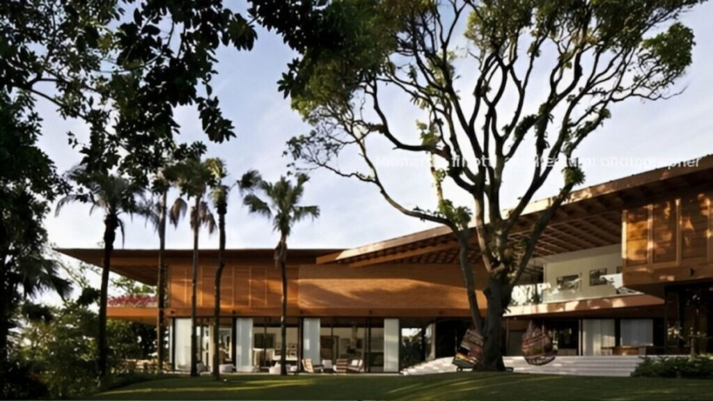 Dos 16 quartos espalhados pela residência, seis possuem suítes. Cinema, salão de jogos, academia e piscinas compõem a área de lazer do local, que foi projetado para priorizar a integração com a natureza: a mansão conta com uma transparência que transforma a mata que está do lado de fora em decoração.