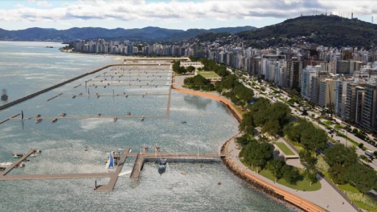 O empreendimento prevê a criação de um grande parque urbano integrado ao mar, com áreas verdes, espaços de convivência e estruturas voltadas ao lazer da população. Até mesmo uma marina completa faz parte do plano, reforçando a vocação náutica da capital catarinense.