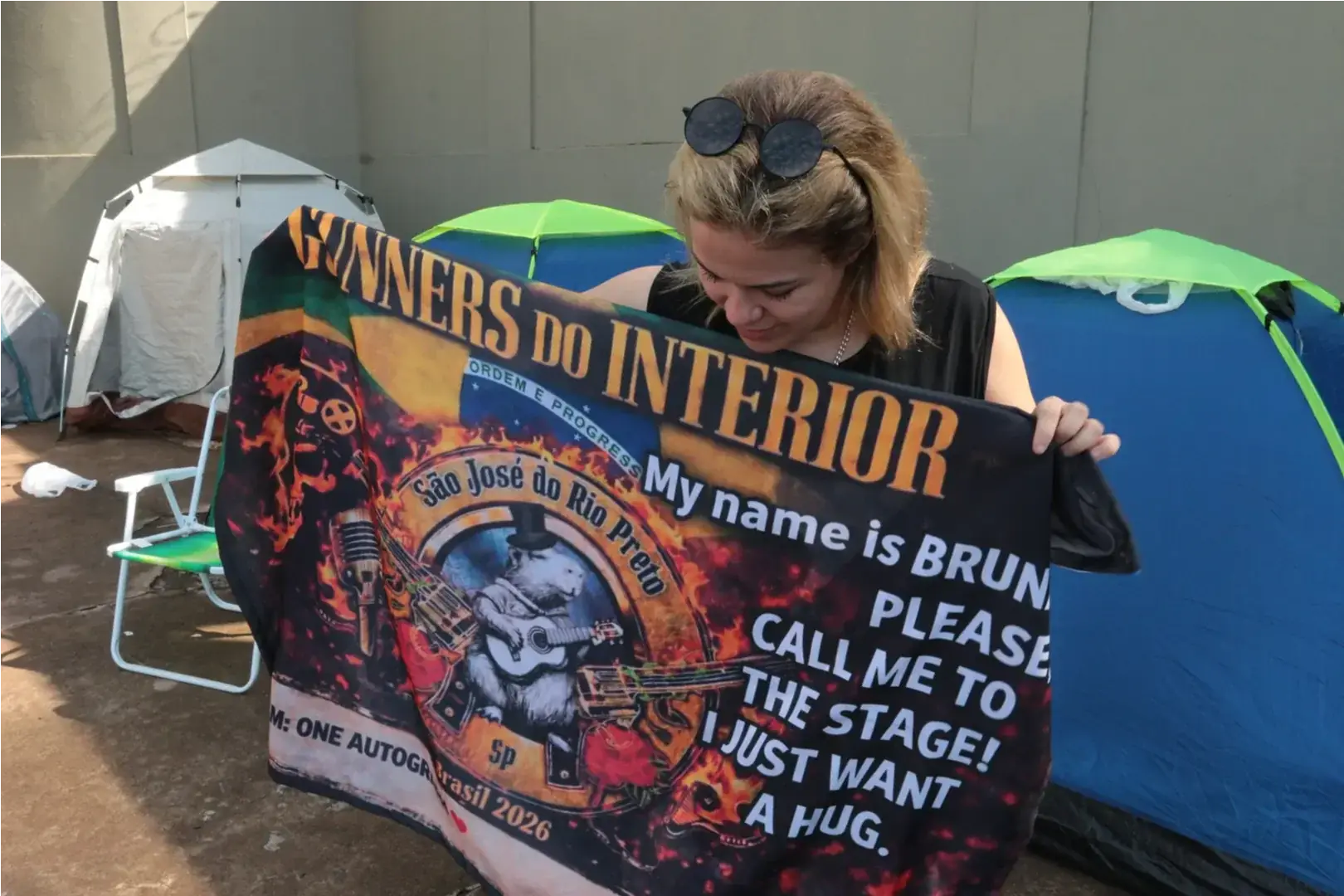 Fãs acampados aguardam até 100 horas por um lugar na frente do palco do Guns, em Rio Preto