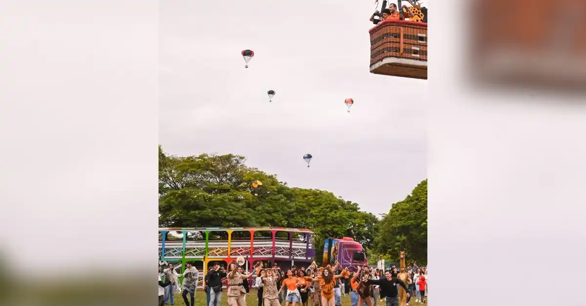 No Dia Mundial do Hambúrguer, um balão subiu com burguers e vouchers que foram lançados sobre o público, de forma segura e coordenada, com paraquedas