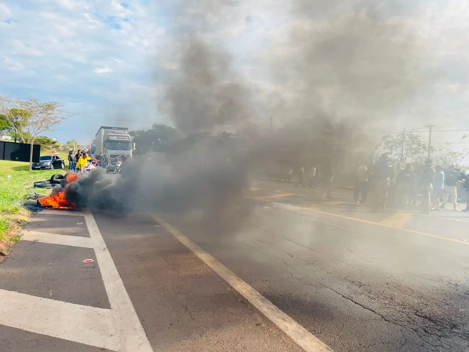 Manifestantes queimam pneus e fecham a BR-153 em Rio Preto