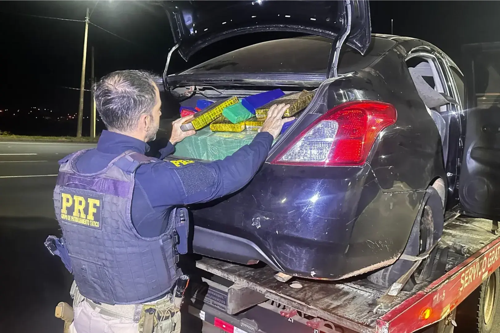 No veículo estava somente um homem de 33 anos, que confessou ter sido contratado para transportar a droga de Joinville (SC) até um destino ainda não informado. Segundo ele, receberia R$ 20 mil pelo serviço.
