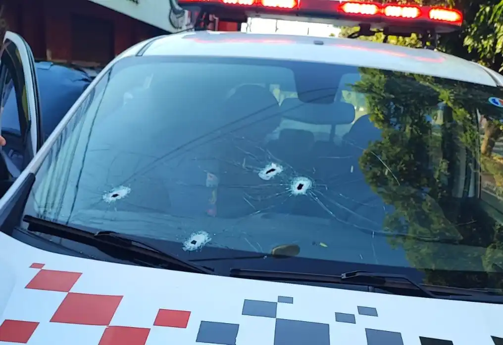 Tanto o veículo utilizado por ele quanto a viatura foram perfurados.