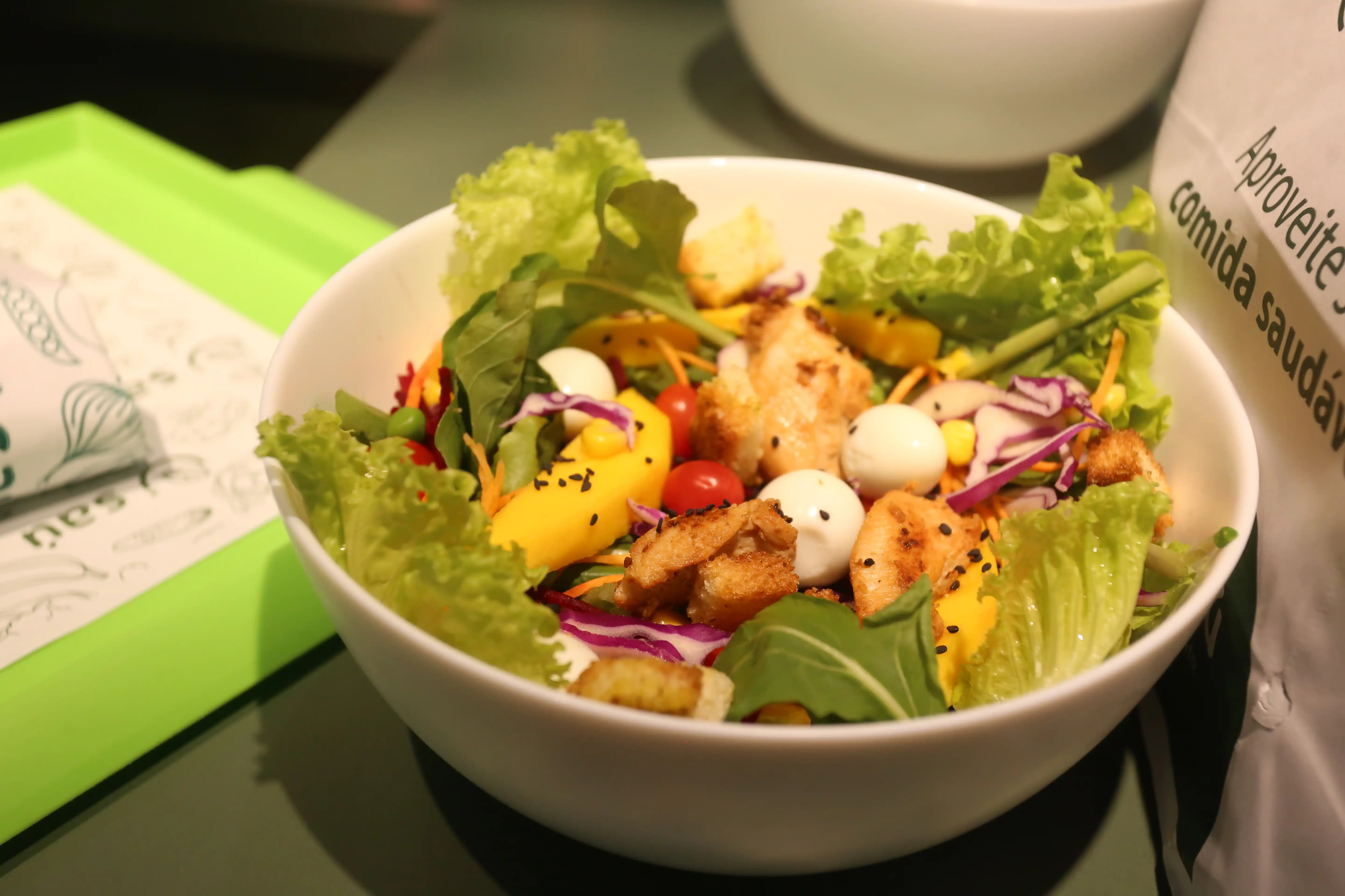 Para aqueles que desejam uma refeição rápida e prática, a saladeria também conta com pratos prontos de saladas, wraps, omeletes e massas.