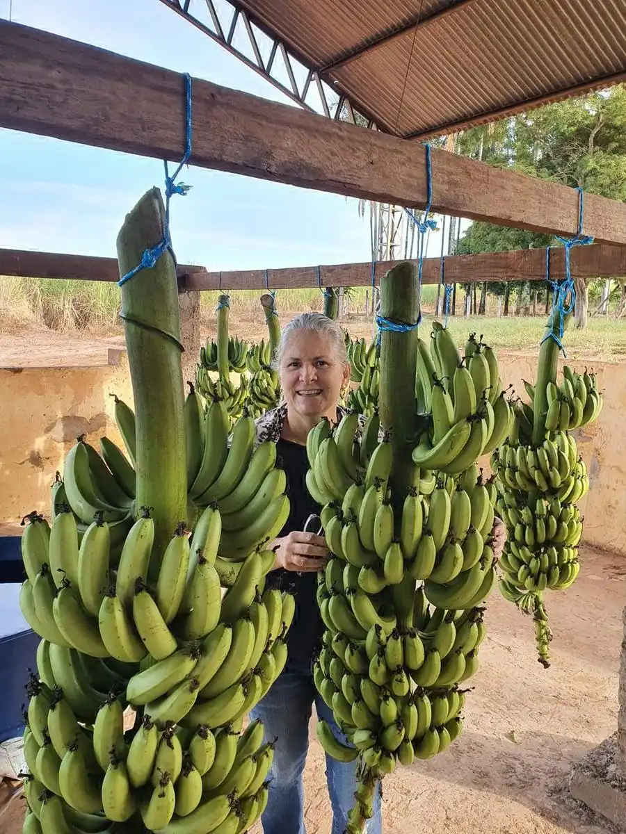 Na propriedade de Palmeira d’Oeste, na região de Catanduva, a produtora Mônica Carvalho Munhoz investiu na produção de 3.000 plantas de banana nanica, com o objetivo de cultivar o cacau, no projeto Cacau SP. Há um ano, ela não pensava em comercializar a banana, quando realizou os plantios da fruta, mas hoje já colhe a fruta e garante uma renda a mais para o seu negócio.
