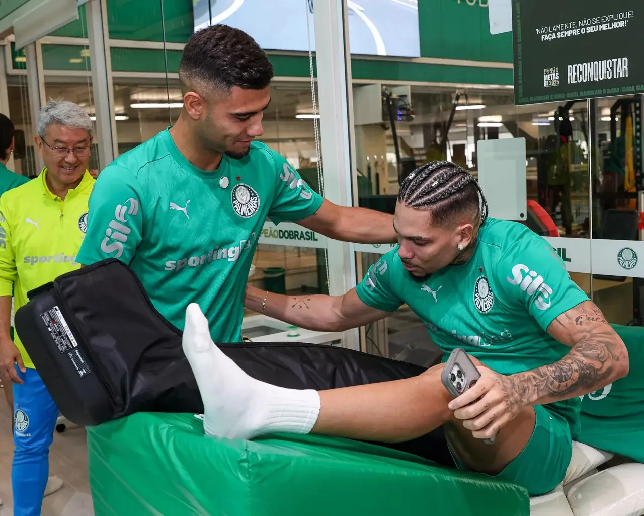 "A estrutura aqui é de um clube de elite da Europa, pode se comparar com a elite do mundo essa estrutura. Estou muito feliz de estar aqui, poder fazer parte. Aqui tem tudo que um jogador precisa para se desenvolver e dar resultado. Isso é o mais importante", disse o atleta, que assinou contrato com o Palmeiras até 2028.