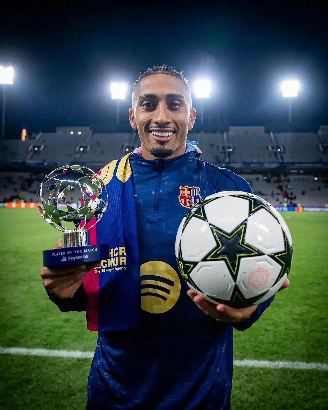 Futebol InternacionalRaphinha faz três contra o Bayern na Liga dos CampeõesEm seu 100º jogo pelo Barcelona, o capitão grená repetiu o compatriota e anotou três vezes na goleada por 4 a 1