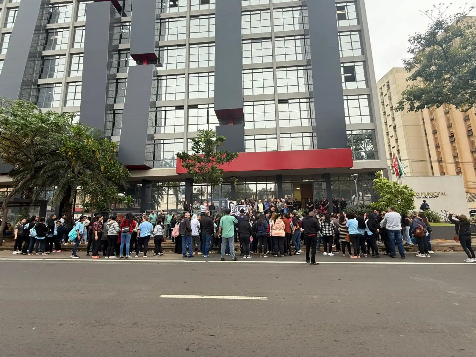 Por conta disso, parte dos funcionários da empresa paralisaram atividades. São cerca de 1,7 mil contratados terceirizados por meio da Secretaria de Educação. Os trabalhadores protestaram em frente a Prefeitura.